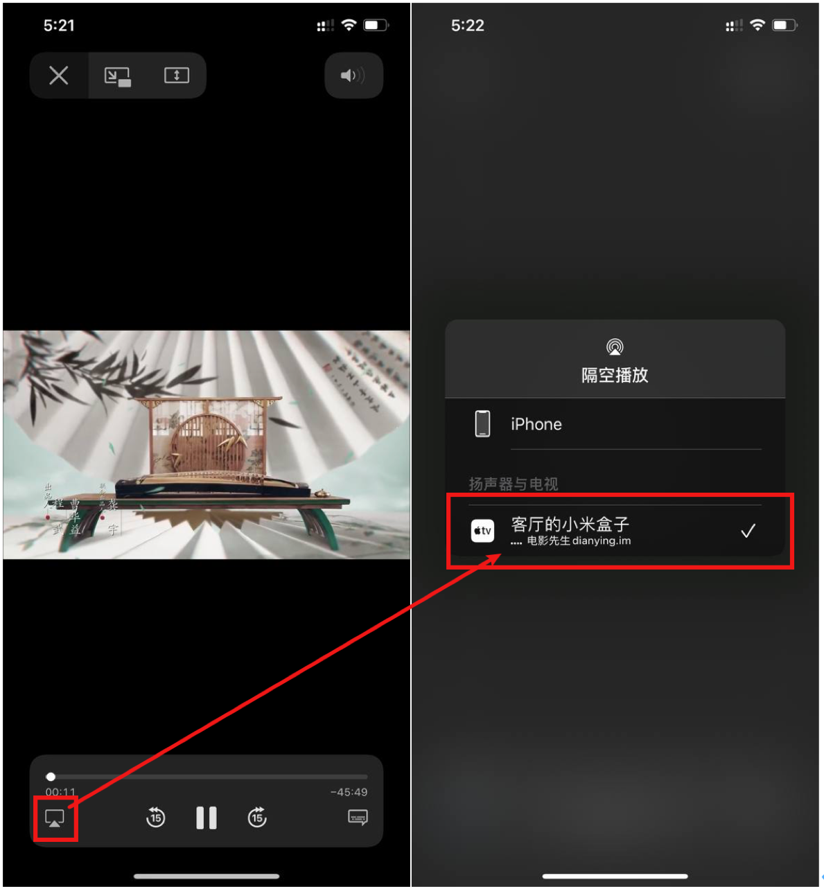 使用Safari浏览器,打开快插基地->开始播放->全屏->左下角投屏->等待搜寻到智能电视/电视盒子->选中,即可投屏。